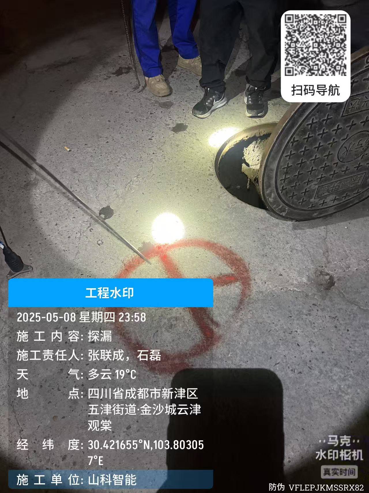 四川新津海天水司漏點(diǎn)周圍環(huán)境復(fù)雜,埋深較高,300口徑鑄鐵管道,埋深1.5米,周圍有煤氣管道和廢舊水管,極其影響判斷,依靠山科漏損漏損團(tuán)隊(duì)的經(jīng)驗(yàn)及先進(jìn)設(shè)備,成功找到漏點(diǎn),進(jìn)行開挖。